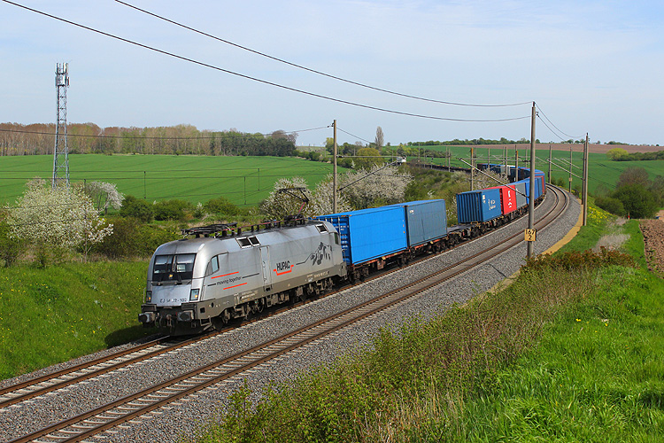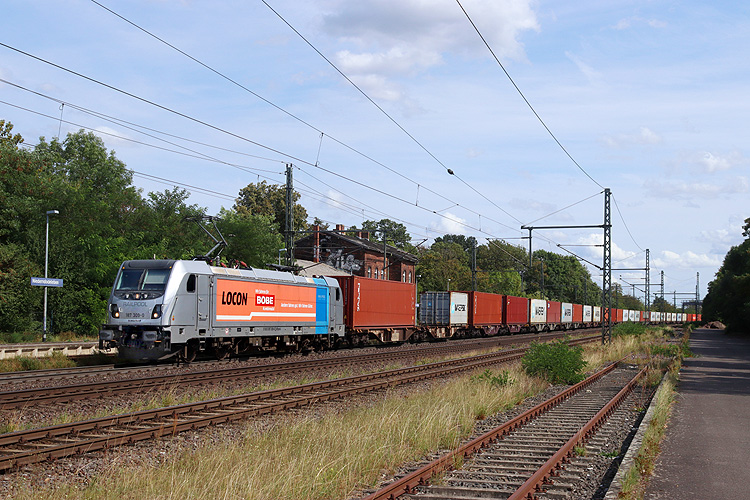 Laude 193 488 war mit einem Laude-Planen-Containerzug in Richtung Braunschweig unterwegs. |