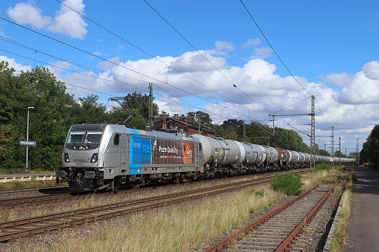 HSL 187 313 war mit einem Kesselzug in Richtung Braunschweig unterwegs. |