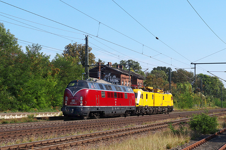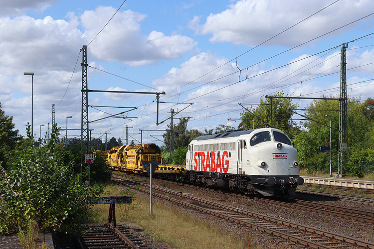 Strabag 227 007 war mit einem Bauzug in Richtung Magdeburg unterwegs. |
