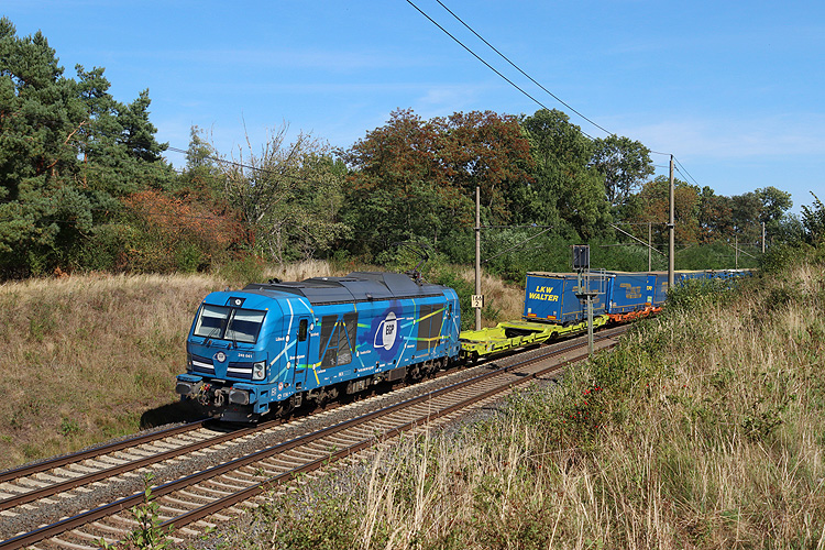 Stock 264 003 kam mit dem Vogt-Containerzug Premnitz - Murg. |