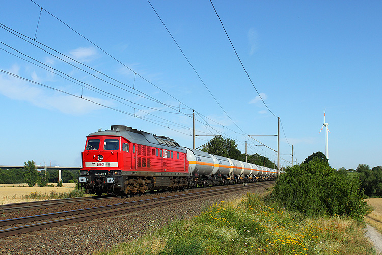 MEG 232 489 kam mit dem Gaskesselzug DGS 99862 Schkopau - Wilhelmshaven. |