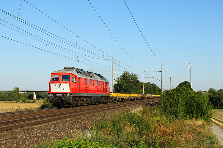 Am 23.08.2019 fuhr WFL 232 901 mit einem leeren Flachwagenzug in Richtung Braunschweig. |