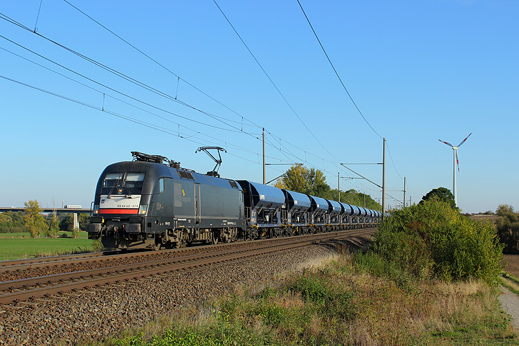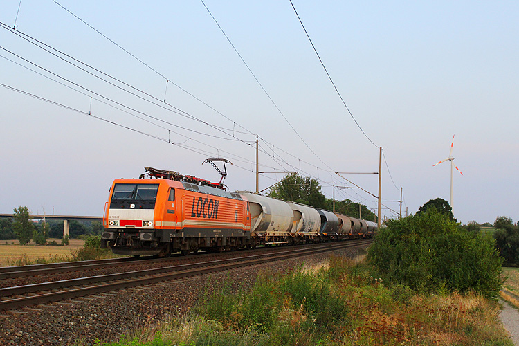 Locon 189 821 fuhr mit einem Silozug westwärts. |