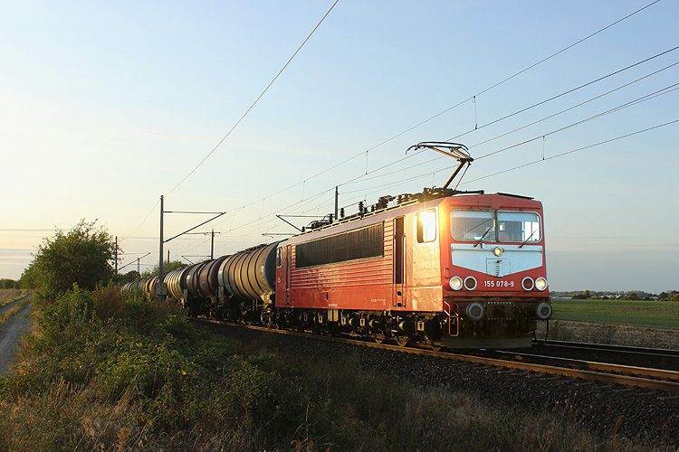 LEG 155 078 war mit einem Kesselzug in Richtung Magdeburg unterwegs. |