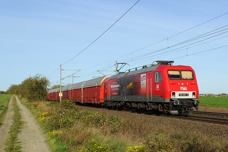 Am 26.10.2019 erwischte ich MEG 156 001 mit dem leeren Porschezug DGS 69233 Bremerhaven - Leipzig. |