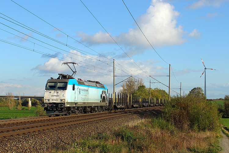 Am 28.10.2019 bekam ich die neue Captrain-Werbelok 185 549 mit dem Stahlzug DGS 89244 Zeithain - Oberhausen vor die Linse. |