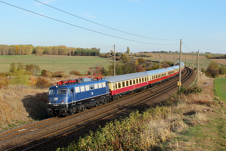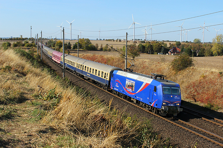 Auch die "Säuferzüge" von Müller-Tours sind im Herbst wieder unterwegs. Vor dem DPF 1764 Köln - Weimar hing SRI 145 088 "Sächsisches Eisenbahnmuseum". |