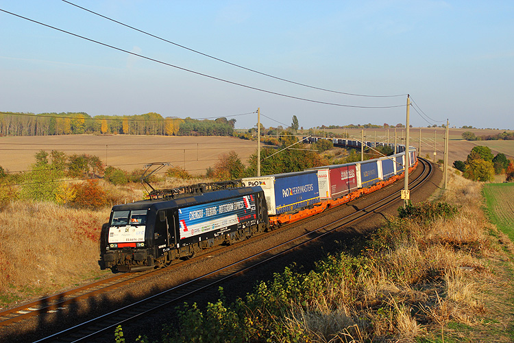 Immer wieder schön anzusehen sind die beiden Werbeloks für den Rotterdam - Poznan - Shuttle. Am 06.11.2018 hatte LTE 189 213 diesen Zug am Haken. |