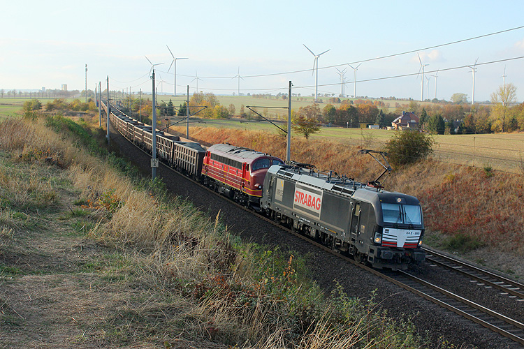 Strabag 193 865 kam mit Altmarkrail MY 1155 und dem Zementklinkerzug Geseke - Dornburg. |