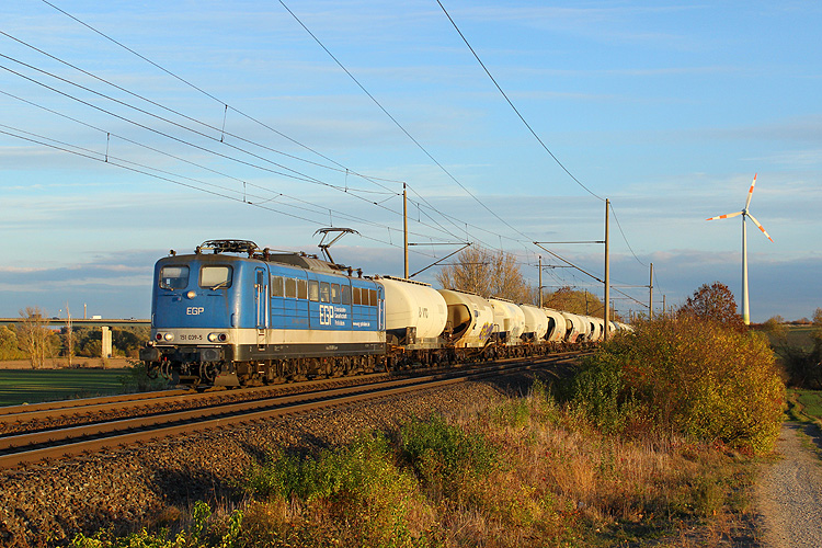 Ovelgünne am 21.10.2018: Die angemietete 111 037 fuhr mit dem Müller-Partyzug DPF 1765 von Weimar nach Köln. |
