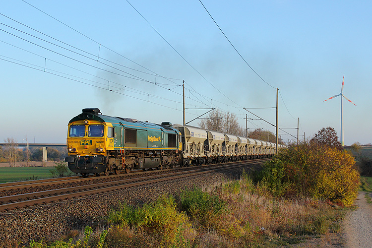 Am Nachmittag quälte sich FPL 66002 mit einem schweren Kieszug die Steigung aus Magdeburg herauf, Ladegut war Lausitzer Grauwacke. |