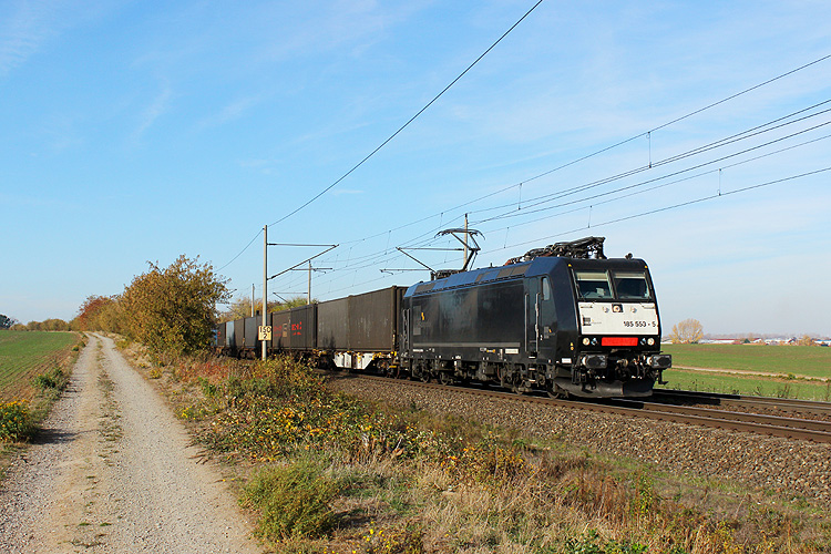 CFL 185 553 war mit einem Blackboxen-Zug in Richtung Magdeburg unterwegs. |