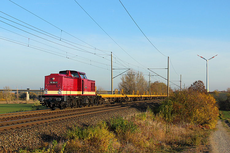 Mit einem leeren Schwellenzug fuhr Lok Ost 112 364 in Richtung Braunschweig. |