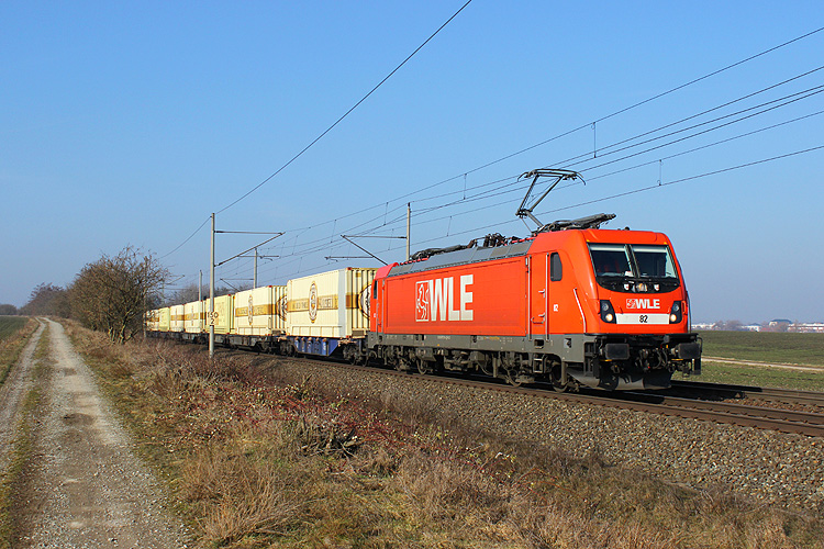 WLE 82 (187 010) kam mit ihrem Bierzug Lippstadt - Großbeeren, der sich im neuen Fahrplan DGS 52464 nennt, pünktlich auf die Minute durch. |