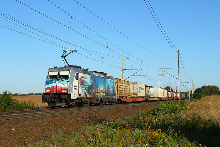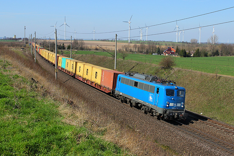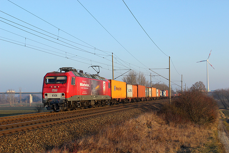 Später erfreute mich noch die MEG 804 (156 004) mit einem Containerzug in Richtung Braunschweig. |