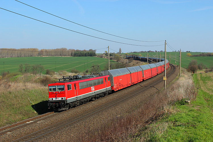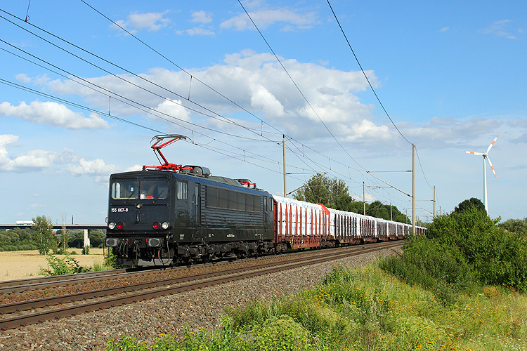 Mit dem Mercer-Holzzug DGS 52778 Saalfeld - Bremen war an jenem Tag 155 007 der EBS unterwegs. |