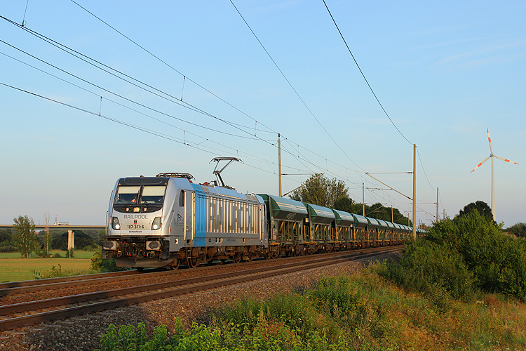 Am Abend des Tages fuhr Enercon 187 311 mit einem Kieszug westwärts. |