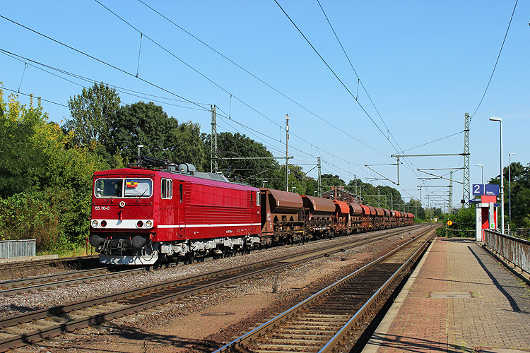 Am 29.08.2017 fuhr WFL 155 110 mit einem Kieszug westwärts. |