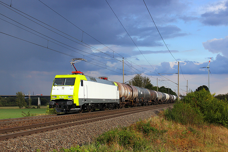 Am 18.09.2017 war die nun in Captrain-Farben fahrende 152 196 mit einem Kesselzug in Richtung Westen unterwegs. |