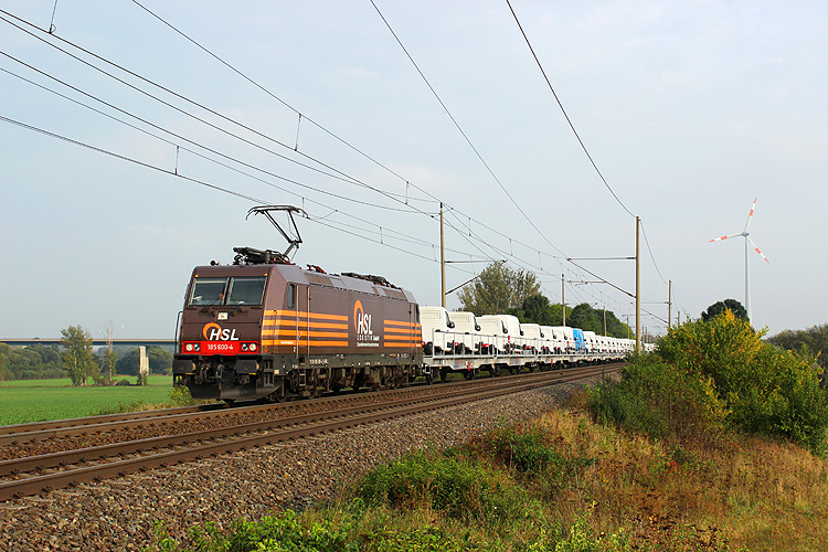 Am 27.09.2017 fuhr HSL 185 600 mit einem VW-Crafterzug der BLG westwärts. |