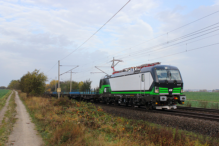 Die werksneue 193 232 fuhr am 20.10.2017 mit einem leeren PKP-Cargo-Stahlzug ostwärts. |