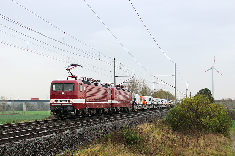 Delta-Rail 243 559 und 650 brachten einen VW-Crafter-Zug von Frankfurt/Oder nach Seelze. |