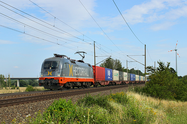 Später kam noch der planmäßige Kakao-Containerzug Berlin - Amsterdam mit seiner von Locon angemieteten Stammlok Hectorrail 242.517. |