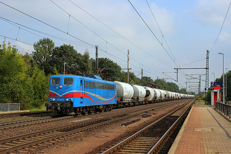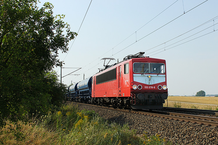 155 078 der LEG war kurz darauf mit einem Düngerzug in Richtung Magdeburg zu sehen. |