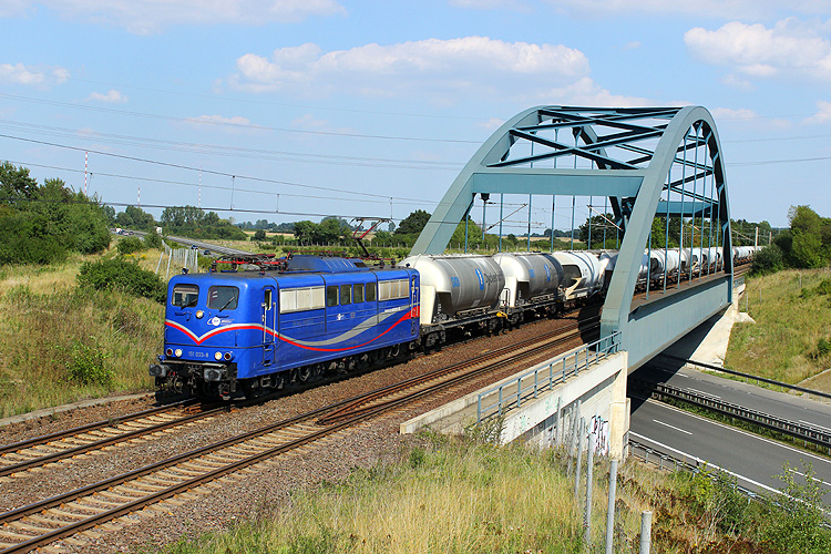 Später folgte unter anderem die frisch untersuchte 156 002 der MEG mit dem DOW-Werkspendel Sluiskil - Schkopau. |