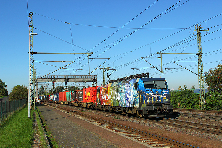 Am 01.10.2015 konnte ich die neue Werbelok 189 206 "Vincent van Gogh" von ERS bestens im Licht vor dem Rotterdam - Poznan - Shuttle ablichten. |
