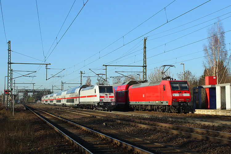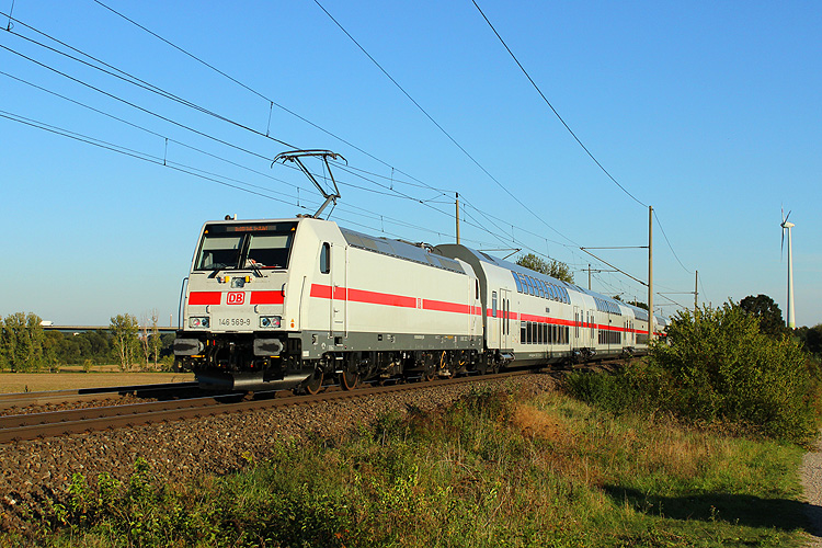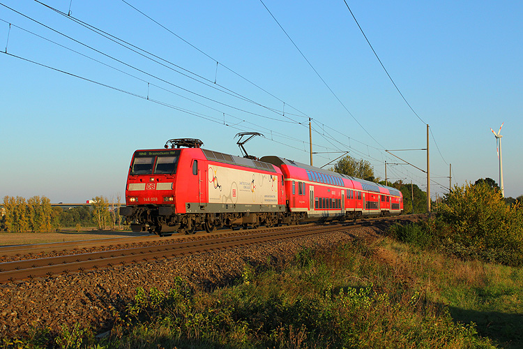 Am Nachmittag des Tages schob 146 569 ihren Doppelstock-IC auf Testfahrt in Richtung Magdeburg. |