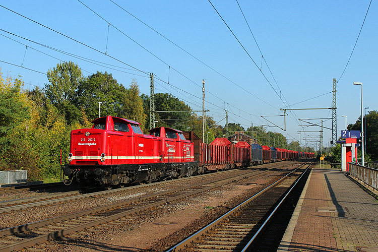 Auch die Rennsteigbahn gab sich an jenem Tag die Ehre, 212 297 + 213 334 fuhren mit einem leeren Holzzug westwärts. |