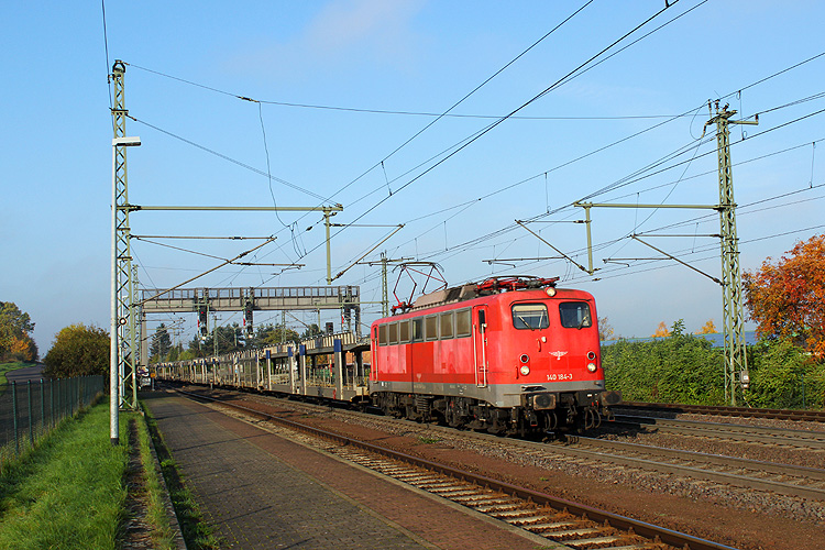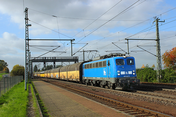 Am 23.10.2015 bekam ich die Press 140 042 mit dem leeren BMW-Zug Bremerhaven - Leipzig vor die Linse. |