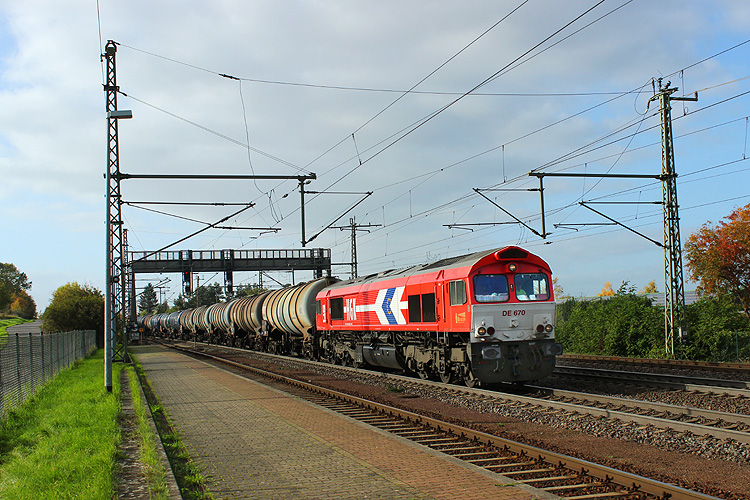Später fuhr auch noch DE670 der HGK mit einem Kesselzug ostwärts, 23.10.2015. |