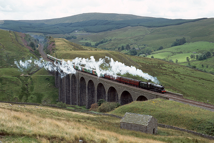 Die nächste Station war die berühmte Settle - Carlisle Linie. Hier war ein Sonderzug mit der "Bahamas" 45596 in Richtung Norden unterwegs, aufgenommen auf dem Arten Gill Viaduct. |