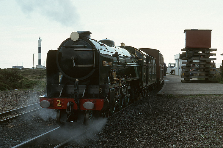 Die "Northern Chief" steht mit ihrem Zug in der in einer Wendeschleife gelegenen Endstation Dungeness. |