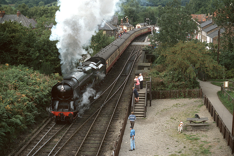34101 "Hartland" verläßt mit Zug nach Pickering die Endstation Grosmont. |