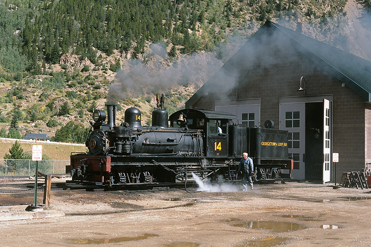 Dann ging es weiter zur Georgetown Loop Railroad, einer einst der Abfuhr von Silbererz dienenden Schmalspurbahn. Die Lok 44 von 1921 war unmittelbar vor unserem Motel als Blickfang aufgestellt. |