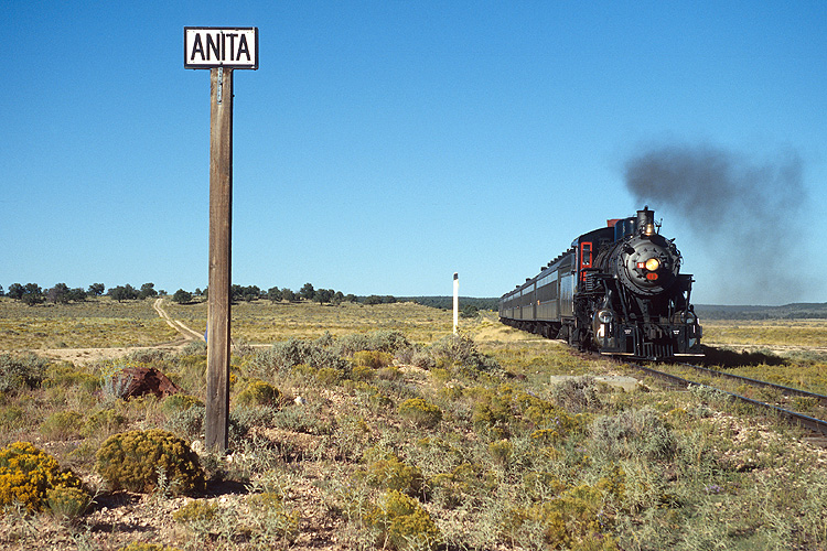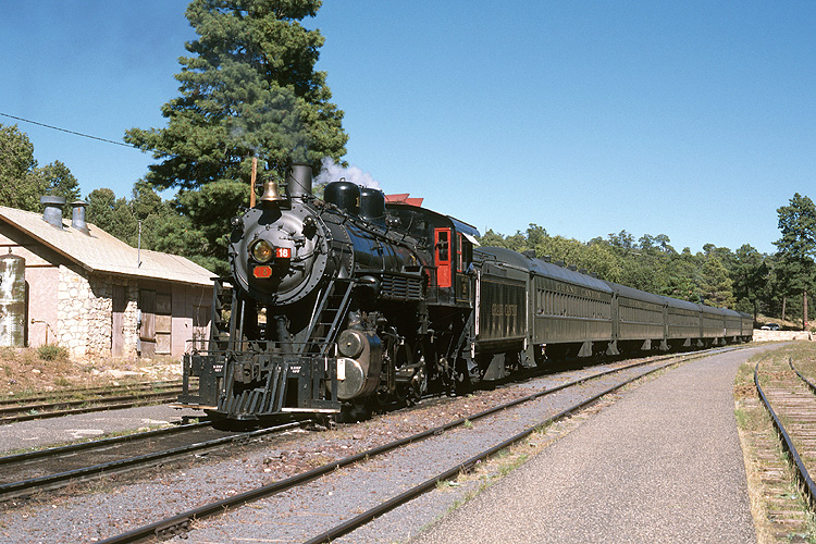 Auf der Grand Canyon Railroad war die 18 von 1910 im Einsatz, hier nach der Ankunft im Bahnhof Grand Canyon Village aufgenommen. |