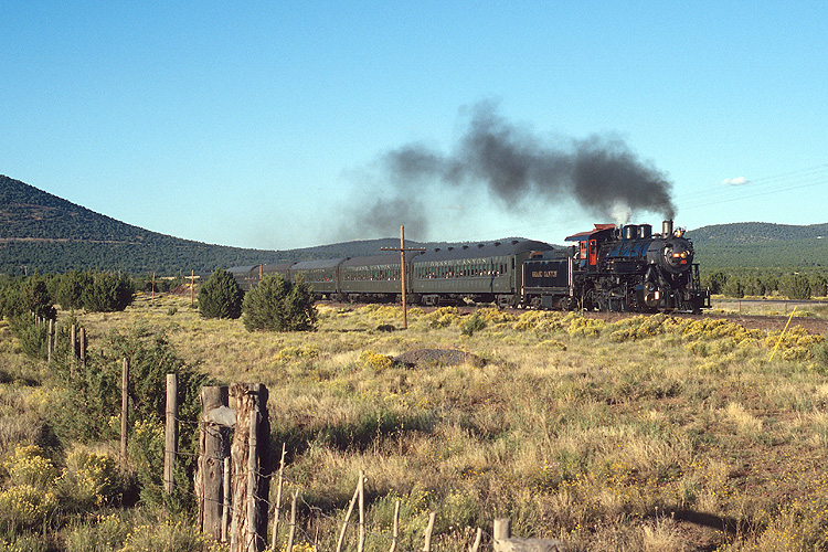 Nach dem Besuch mehrerer Nationalparks war unser nächstes Ziel in Sachen Eisenbahn die Grand Canyon Railroad. Auf der Anreise sahen wir in Flagstaff die imposante 12 der Southwest Lumber Mills, Baujahr 1929, die dort als Denkmal vor dem Pioneer Museum aufgestellt ist. |