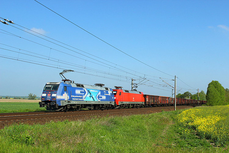 EBS 155 195 + 243 822 mit dem leeren Laugenzug DGS 52605 Sehnde - Gerstungen |