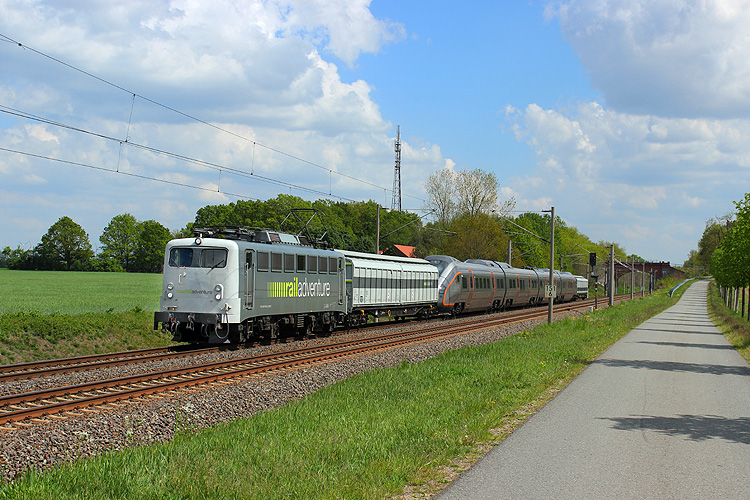 Weiter ging es bei Streesow, Railadventure 139 558 überführte einen Flytoget Oaris als DbZ 94151 von Wittenberge nach Ludwigslust. |