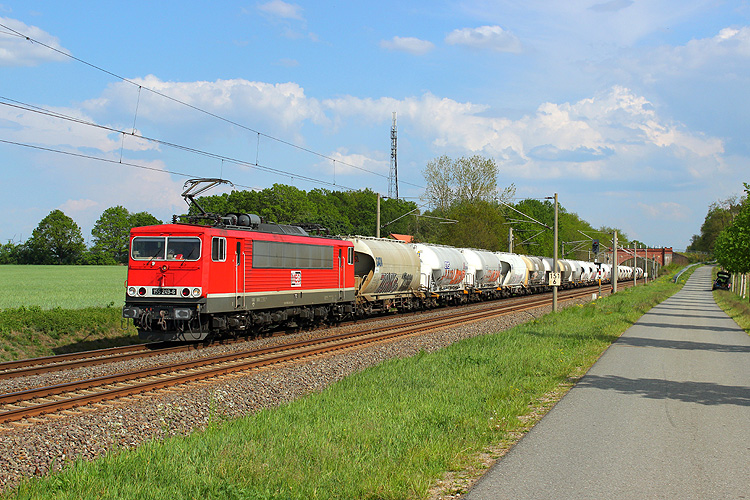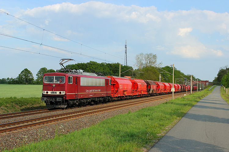 Am 19.05.2019, dem letzten Tag für die Rostock-Umleiter, ging es nochmal in die Prignitz nach Streesow. MEG 155 249 kam mit dem Zementzug Rüdersdorf - Rostock. |