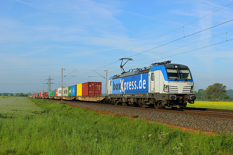Die Boxxpress-Vectron wurden in Frühjahr 2019 endlich mal gründlich gewaschen, wie hier 193 883 mit Containerzug nach Bremerhaven beweist. |