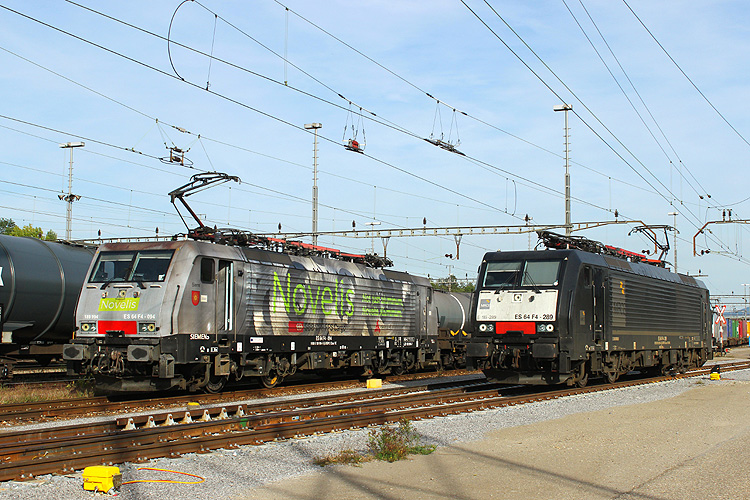 Der Samstag, 14.09.2019, war einem Ausflug durch die Schweiz vorbehalten. Als ich am späten Nachmittag am Güterbahnhof Muttenz vorbei kam, mußten aber doch noch ein paar Eisenbahnbilder sein. SBB-Cargo 189 994 "Novelis" stand mit dem Novelis-Mischer nach Göttingen abfahrbereit, während SBB-Cargo 189 289 an ihren Zug fuhr. |