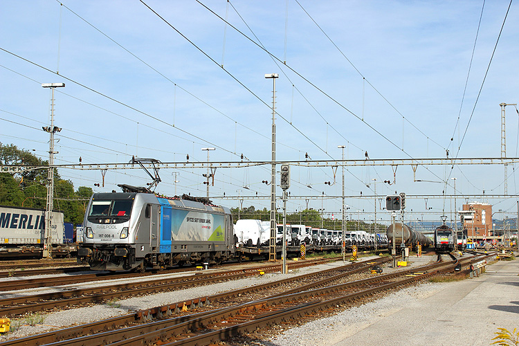 BLS-Cargo 187 008 mit Fiat-Transporterzug in Richtung Deutschland. |