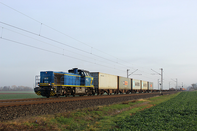 Am 22.03.2019 ging es endlich mal wieder an die NSS nach Nörten-Hardenberg. Unter anderem war EVB 277 402 mit einem Containerzug in südliche Richtung unterwegs. |