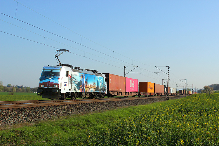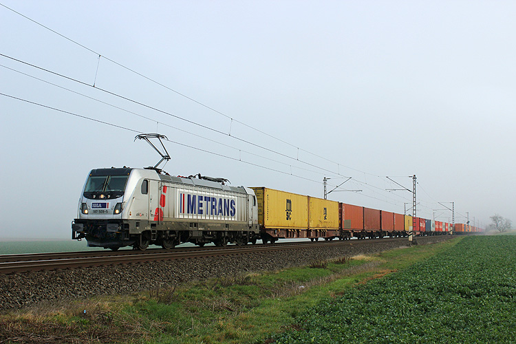 Metrans 386 020 war mit einem Containerzug von Hamburg nach München unterwegs. |