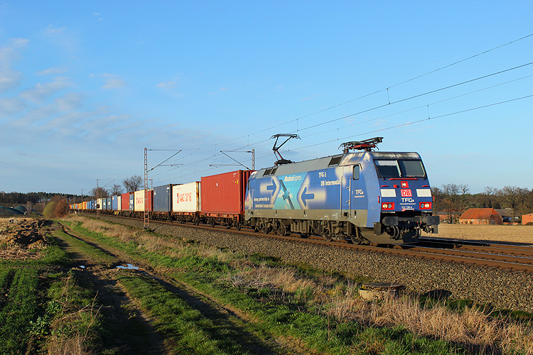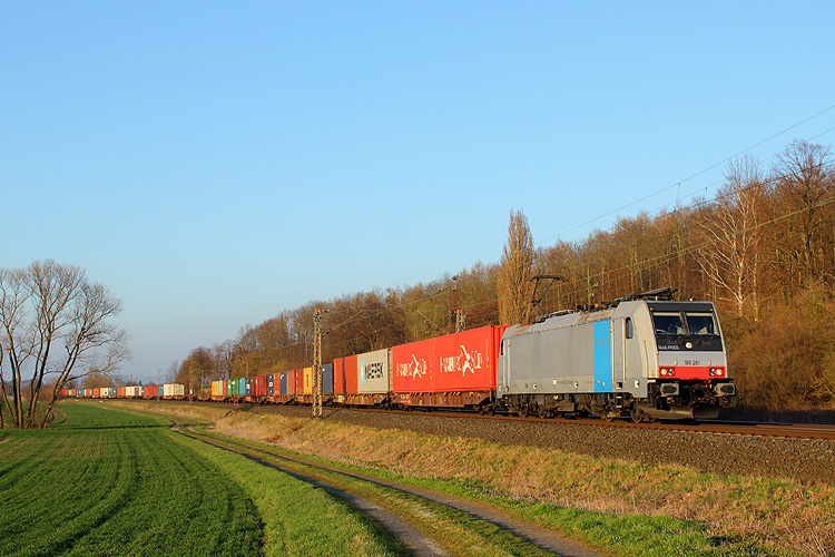 Die für Metrans fahrende 186 281 fuhr mit einem Containerzug südwärts. |