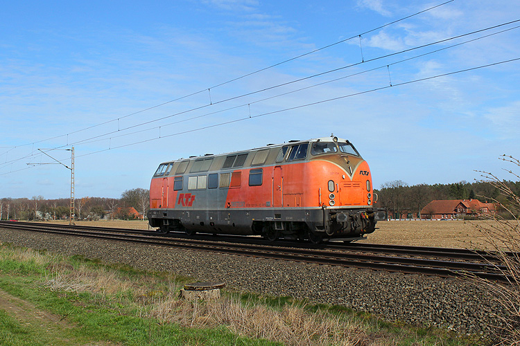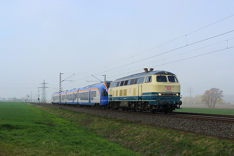 Am 06.04.2019 ging es schon wieder an die NSS nach Nörten-Hardenberg. TFT 218 003 fuhr mit einem Cantus Flirt nordwärts. |